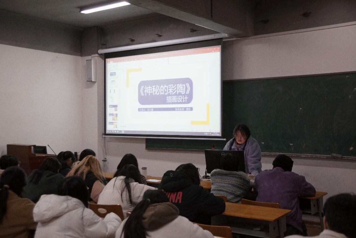 孙三媛同学的汇报题目是《神秘的彩陶》插画设计,将绘本插画设计看做是一种独特的艺术形式,旨在通过图像和色彩的组合,为绘本故事赋予生命和情感。《神秘的彩陶》是一本以彩陶为主题的绘本,旨在向读者展示彩陶的神秘和美丽。插画师需要深入理解故事内容,将文字描述转化为视觉元素,通过注重色彩、线条、构图和细节等方面的表现,以创造出具有视觉冲击力和艺术价值的作品。
