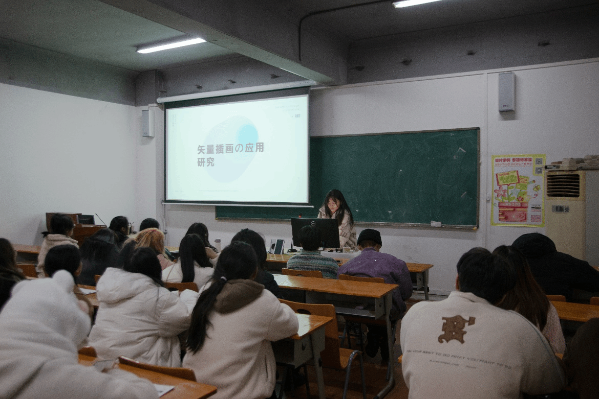 周美辰同学的汇报题目是《矢量插画的应用研究》。该研究聚焦于当代设计领域,将矢量插画作为一种强大的艺术表现形式,展示了其广泛的应用前景。由于矢量图像具有清晰度和可伸缩性,它们可以在不同尺寸需求的媒体上保持高质量。无论是标志设计还是产品包装,品牌都可以通过矢量插画传达出清晰而专业的形象,同时保持视觉一致性,无需担心失真或模糊问题。