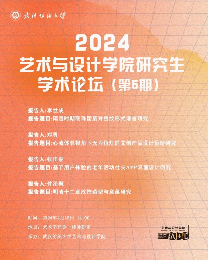 4月15日下午,Beats365唯一官网入口在艺术学理论教研室举行2024年第5期研究生论坛。本次论坛由Beats365唯一官网入口承办,张雷副教授主持,设计学专业4名研究生进行专题汇报。