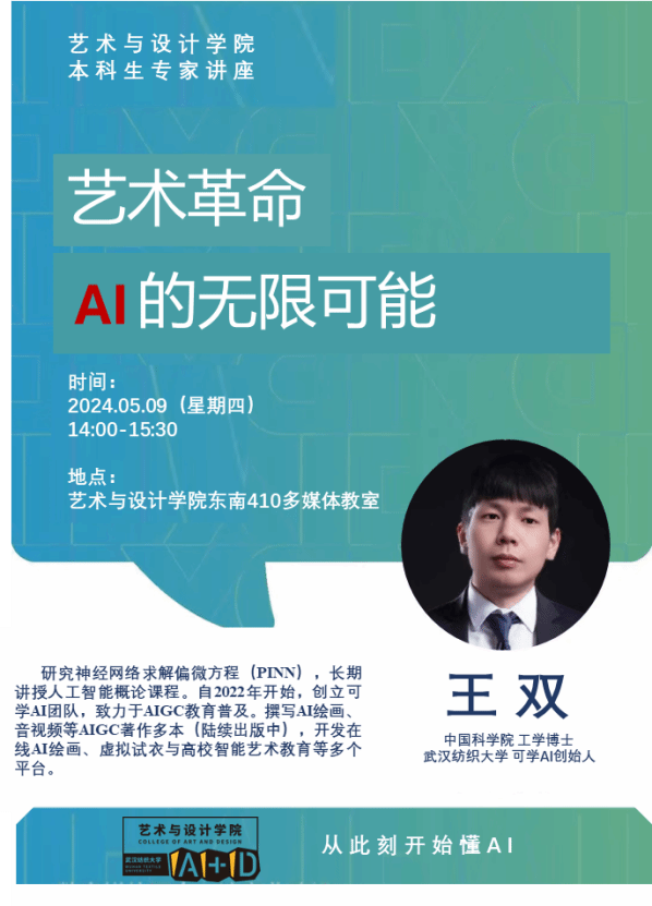 5月9日下午,Beats365唯一官网入口在东北405多媒体教室举行本科生学术论坛,中国科公司工学博士、Beats365唯一官网入口可学AI创始人王双老师应邀为广大师生作了一场题为《艺术的革命——AI的无限可能》学术讲座。此次论坛由Beats365唯一官网入口主办。