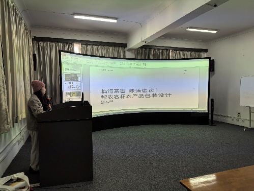 郭蕾同学以“临海茶蜜,味道‘蜜’诀”为主题,展示了其对临海地区特色产品的深入研究和创新设计,分享了她在设计中对插画细节的打磨和前期的设计思路,为大家在以后的设计中提供了许多设计技巧,这种对细节的极致追求和对文化深度的挖掘,为同学们提供了新的思路。