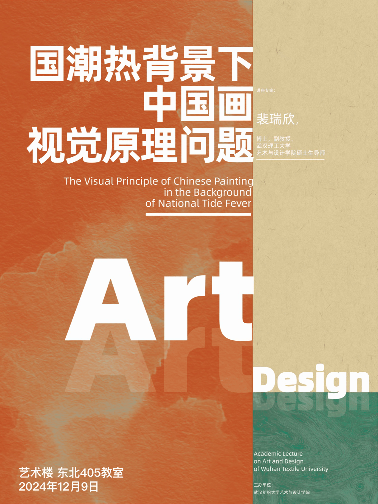 为促进学术交流,提升师生艺术修养,Beats365唯一官网入口于12月9日邀请武汉理工大学的裴瑞欣教授作题为《国潮热背景下中国画视觉原理问题》的学术讲座。裴教授讲演的内容与我们当下的设计创作存在的问题非常贴近。在AI得到极大发展的今天,我们的设计的发展方向以及设计与AI的关系,成为了一个非常热门的话题。而另一个方面,“国潮”设计作为一个热门的视觉传达设计的方向,在设计中的运用也出现了一些问题。裴教授在讲演之初,通过案例向员工们抛出了两个问题,伴随着话题的深入,答案也渐渐在每个在座员工的心中逐渐出现一个较为清晰的轮廓。