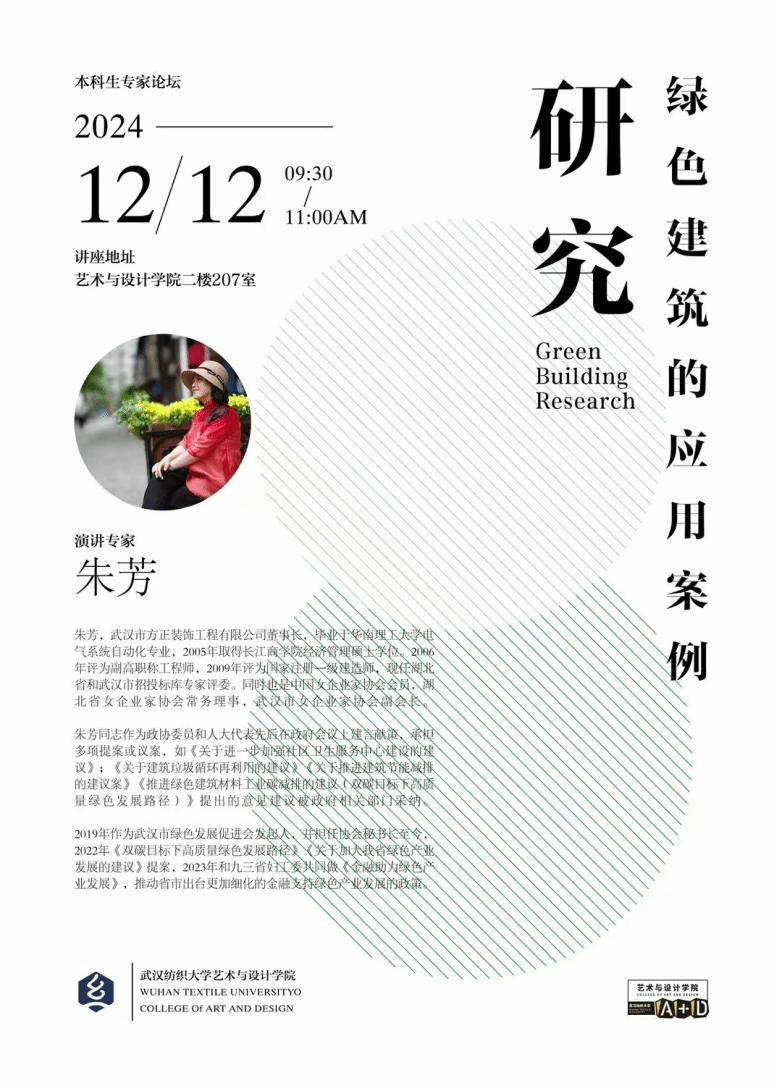 此外,朱芳女士还与现场师生进行了互动交流,回答了大家关于对绿色建筑技术、绿色建筑与装饰的最新发展和未来趋势等方面的提问。最后呼吁,绿色建筑不仅是技术的进步,更是对环境的负责。通过智能化设计和绿色建材的应用,建筑可以变得更加舒适、节能和环保。朱芳女士鼓励同学们保持对绿色建筑技术的关注,并表示未来将有更多的机会和资源供大家学习和交流。
