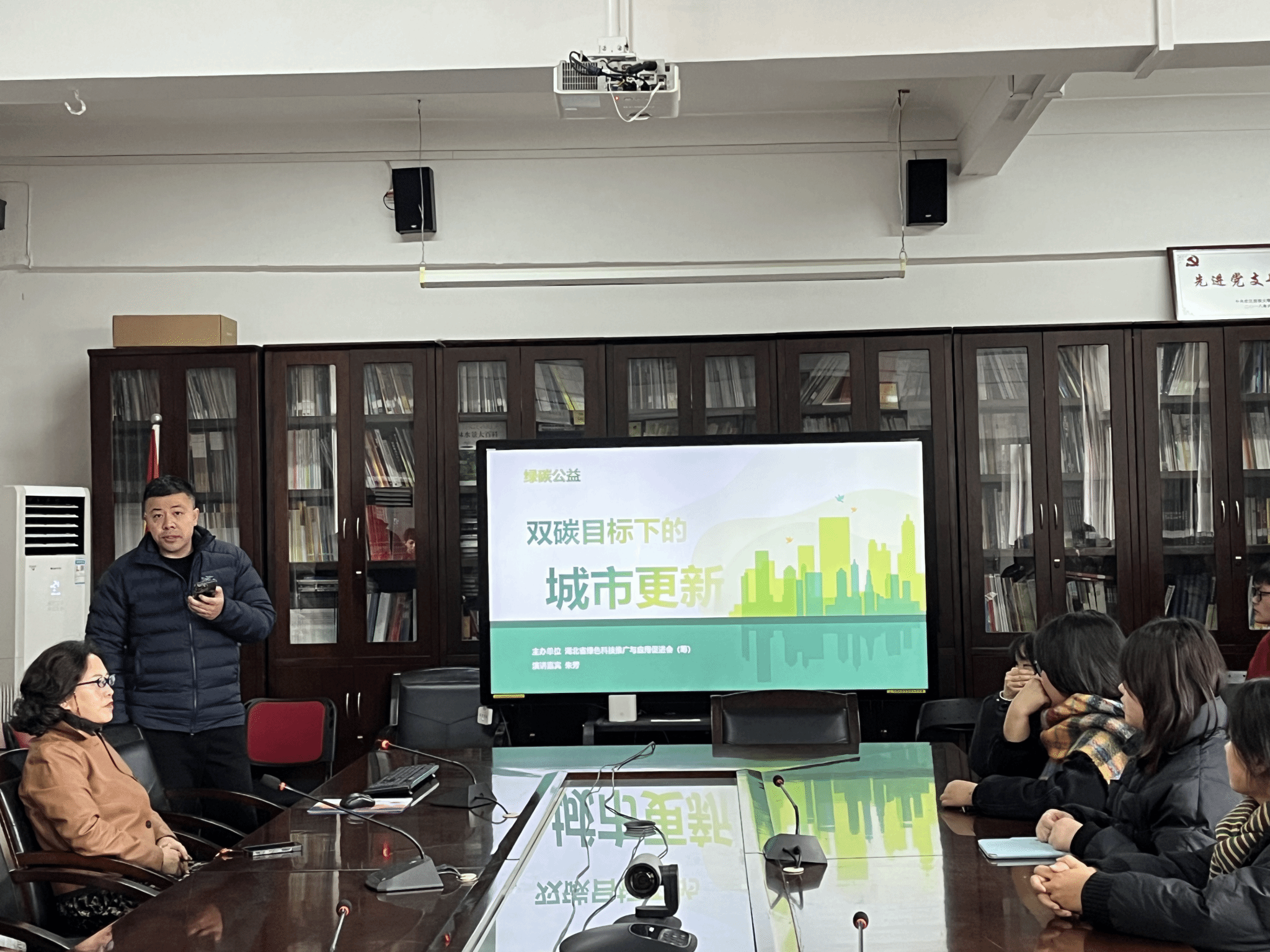 讲座开始前,曹凯首先对朱芳女士的到来表示热烈欢迎,并在发言中强调了绿色建筑与装饰与专业核心课程的紧密联系,指出教育内容与行业实践的一致性至关重要。