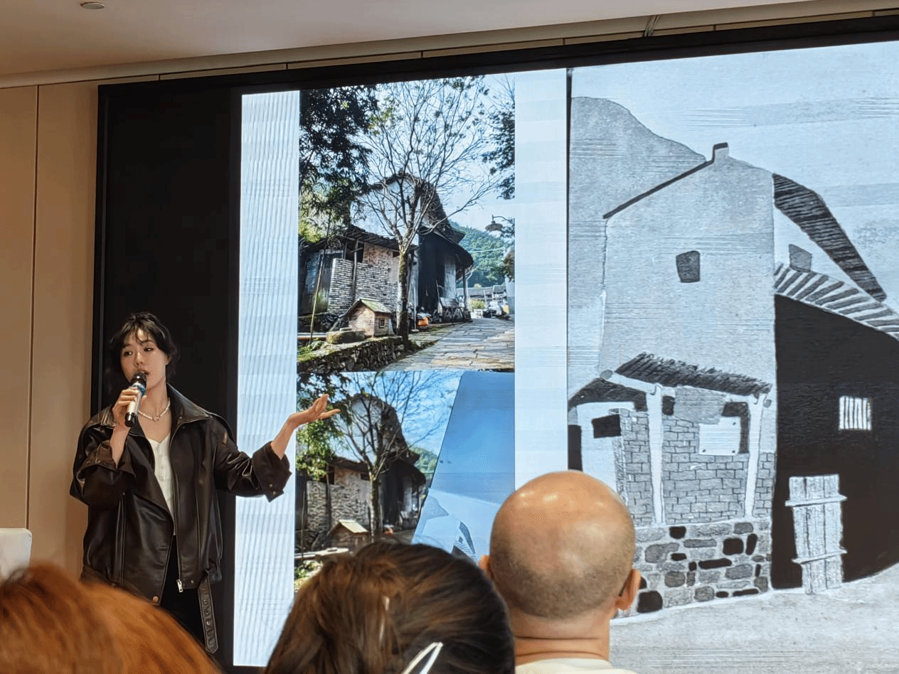 王正莹进行了题为《从具象到抽象》的讲座,她以婺源古村为样本,示范了具象元素解构、符号重组与肌理转化的创作过程。通过投影案例对比,引导员工探索视觉语言的无限可能,理解具象到抽象的内在逻辑。