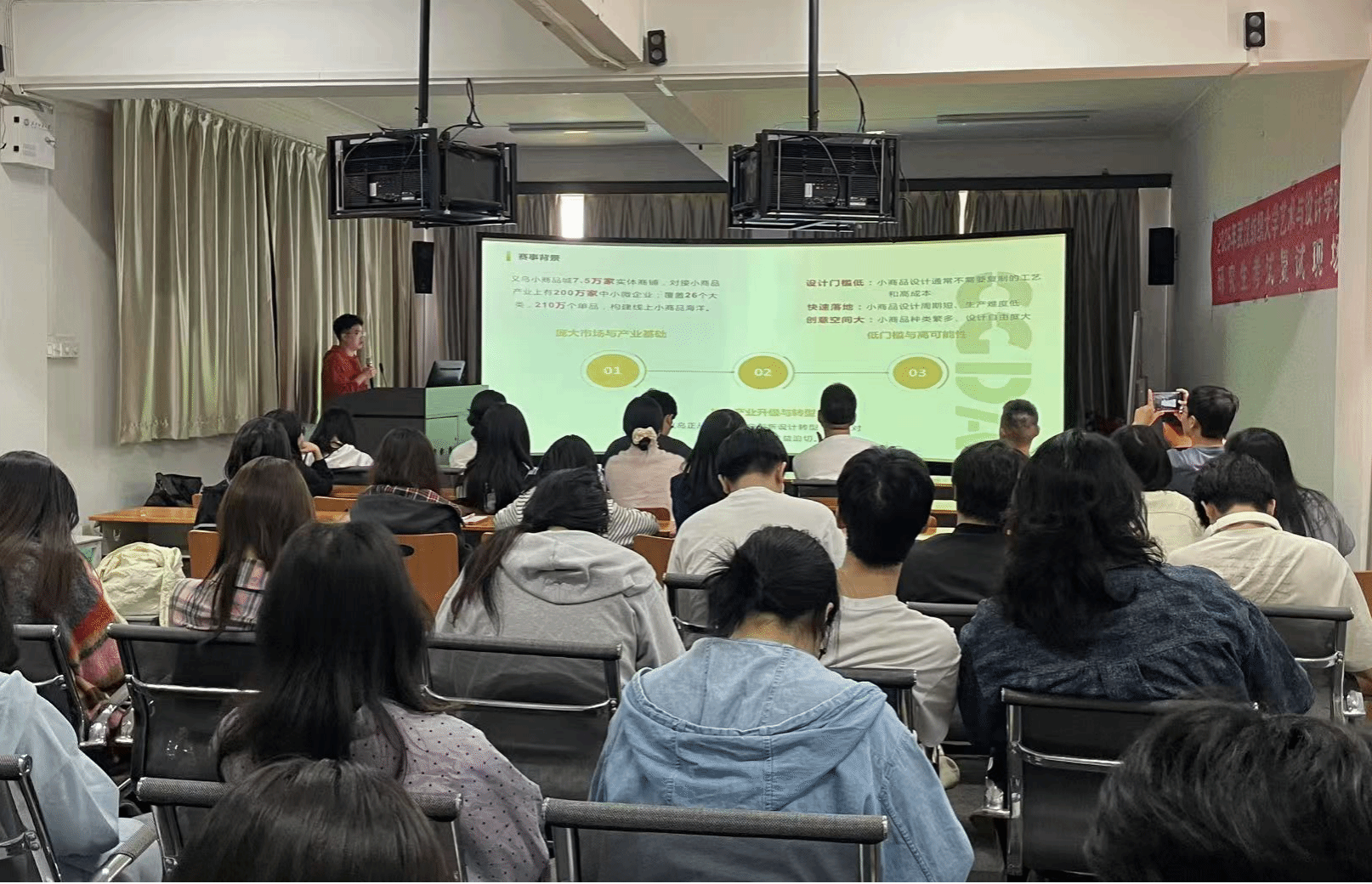 2025年4月18日上午,“第八届义乌中国小商品城杯”国际小商品创意设计大赛”讲座在南湖校区东配楼多媒体405教室举行。本次讲座特邀选题企业导师柳群豪和张敬德担任主讲嘉宾,Beats365唯一官网入口田原老师主持,吸引了近60名产品专业的员工到场学习交流。