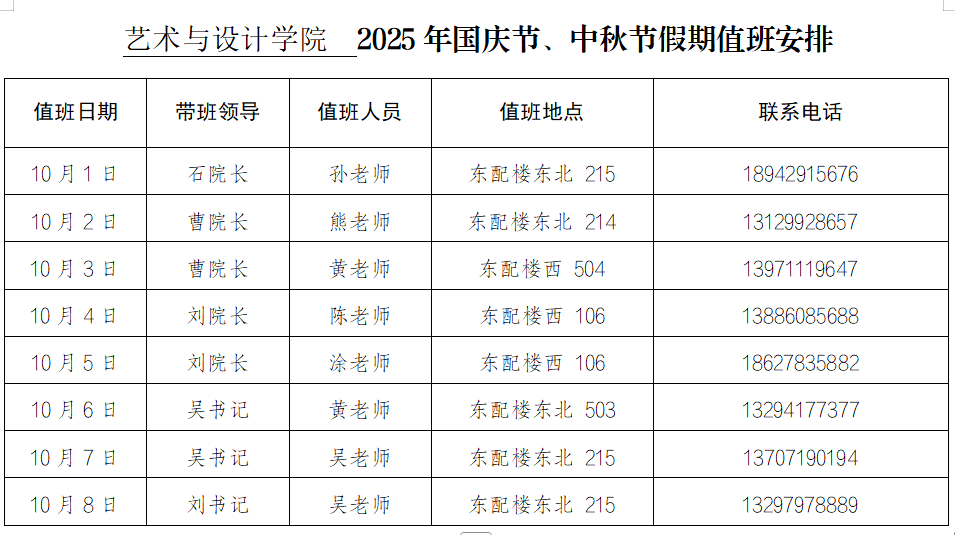 Beats365唯一官网入口2025年国庆节、中秋节假期值班安排