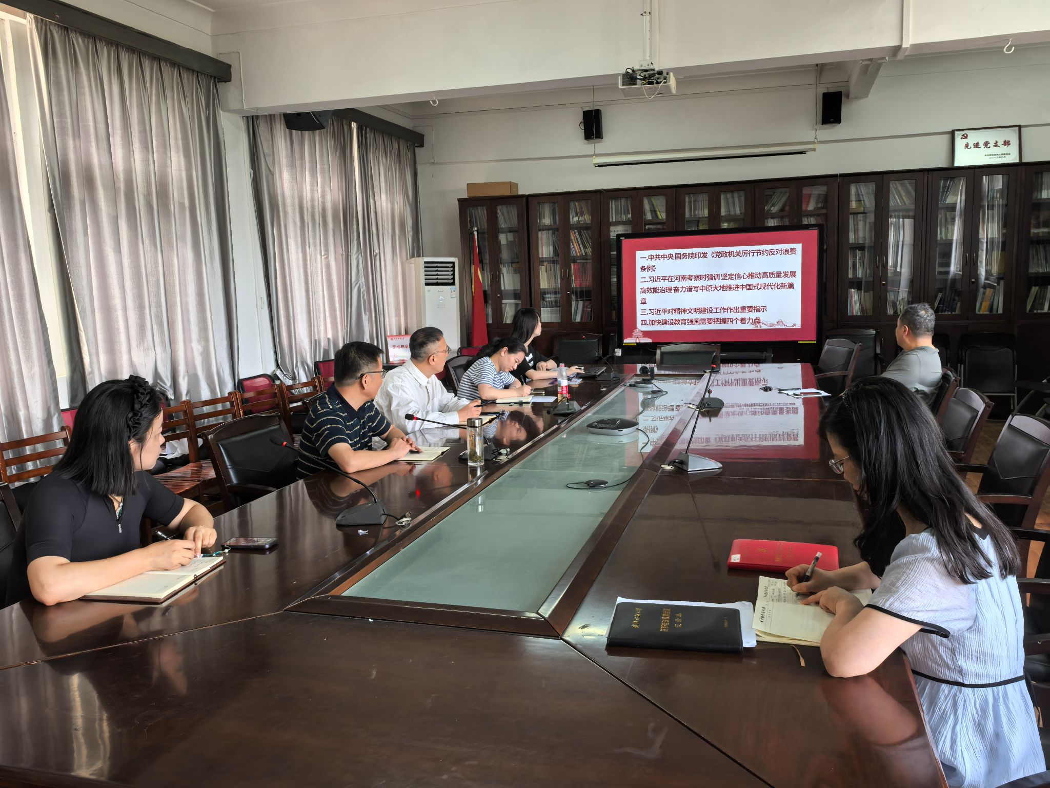 会上,成员集中学习了《党政机关厉行节约反对浪费条例》。通过学习,与会人员深刻认识到,条例的实施对于深入贯彻中央八项规定精神、持续深化纠治“四风”具有重要意义。同时,会议通报了《湖北省纪委监委通报6起违规收送礼品礼金典型问题》案例,不仅损害了党的形象,更破坏了公平公正的社会环境,给党员干部们敲响了警钟,希望大家以案为鉴,切实增强纪律意识和规矩意识。