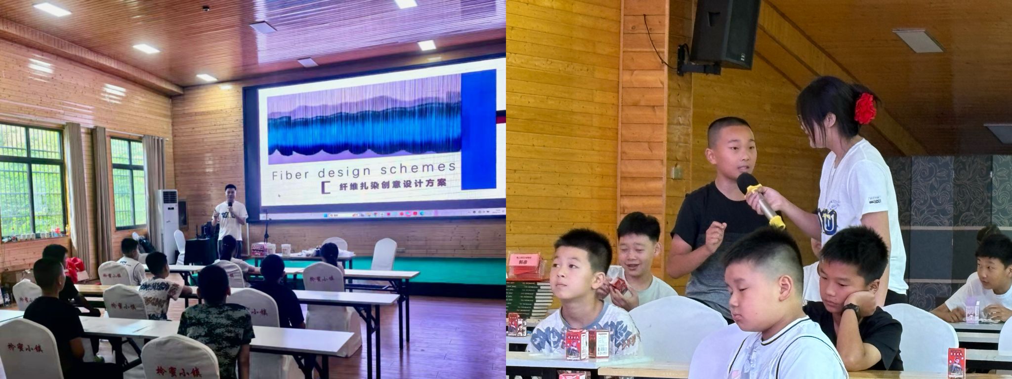 在“扎染技艺科普小课堂”上,队员们化身非遗引路人,通过生动讲解、精美图片和自制的科普短片,向孩子们展现了扎染的历史、技法与现代魅力。孩子们的学习热情在紧随其后的“扎染知多少”知识竞赛中高涨。“扎染古代叫什么?”“常见扎法有哪些?”“这个图案象征什么?”,孩子们争相抢答,现场氛围十分热烈。
