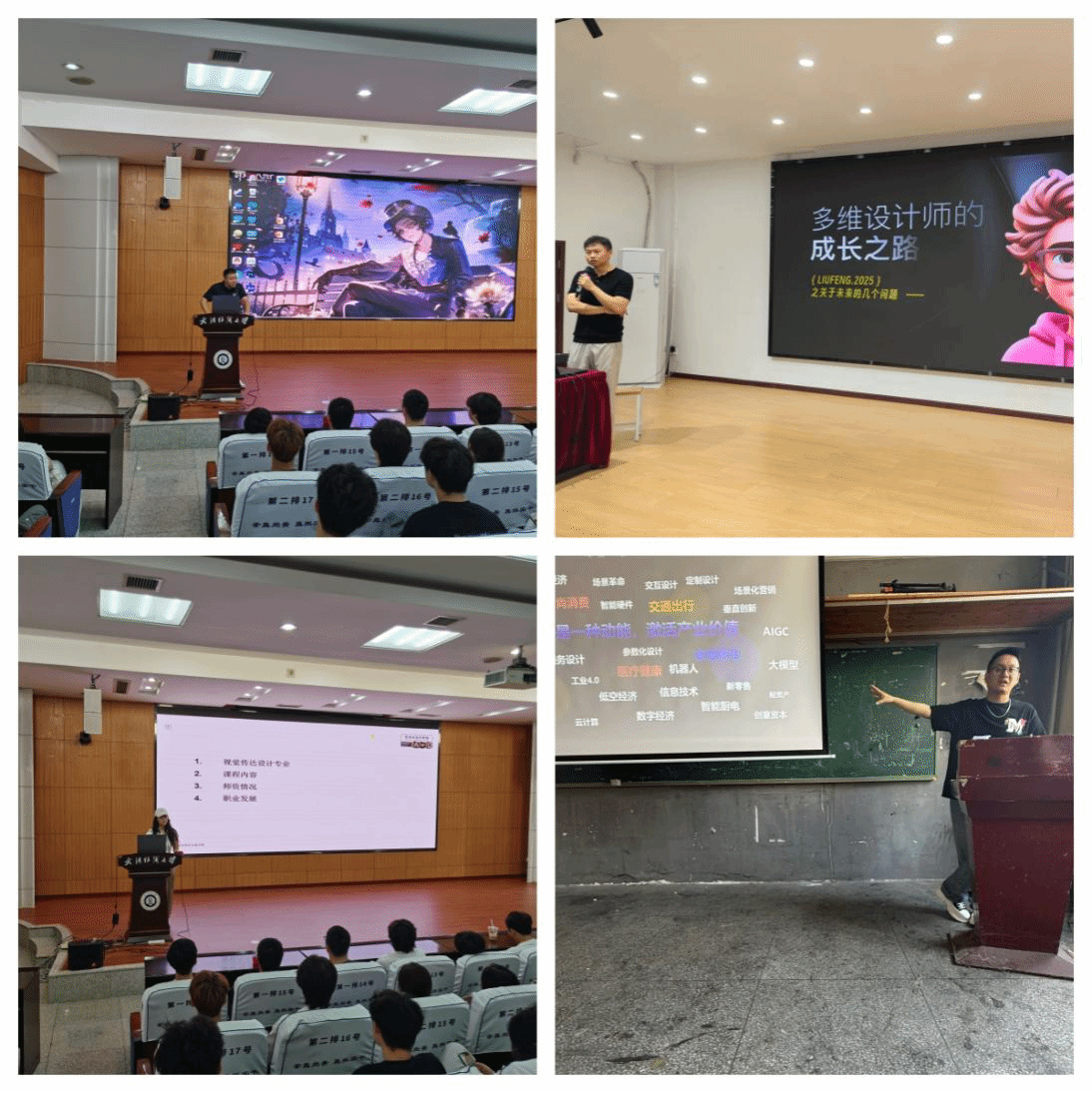 9月28日至30日,各专业组织全体新生通过国家智慧教育平台,完成6学时AI通识课程学习,重点观看AI在视觉艺术、智能设计、数字媒体等领域的应用案例。10月9日至10月11日,各系部线下开展多种形式AI课程教学活动,结合案例讲解 AI 在视觉设计、产品设计、数字艺术等领域的应用,如 AI 生成设计灵感、辅助 3D 建模,消除新生技术陌生感。搭建线上 AI 设计工具平台,让新生实操 AI 绘图软件、色彩搭配系统等。同时安排高年级学长分享利用 AI 工具提升设计效率的案例,助力新生构建学习思路。各班组织AI学习心得交流,推荐优秀作品参与公司成果展示,鼓励参加创新创业公司AI设计征集活动。