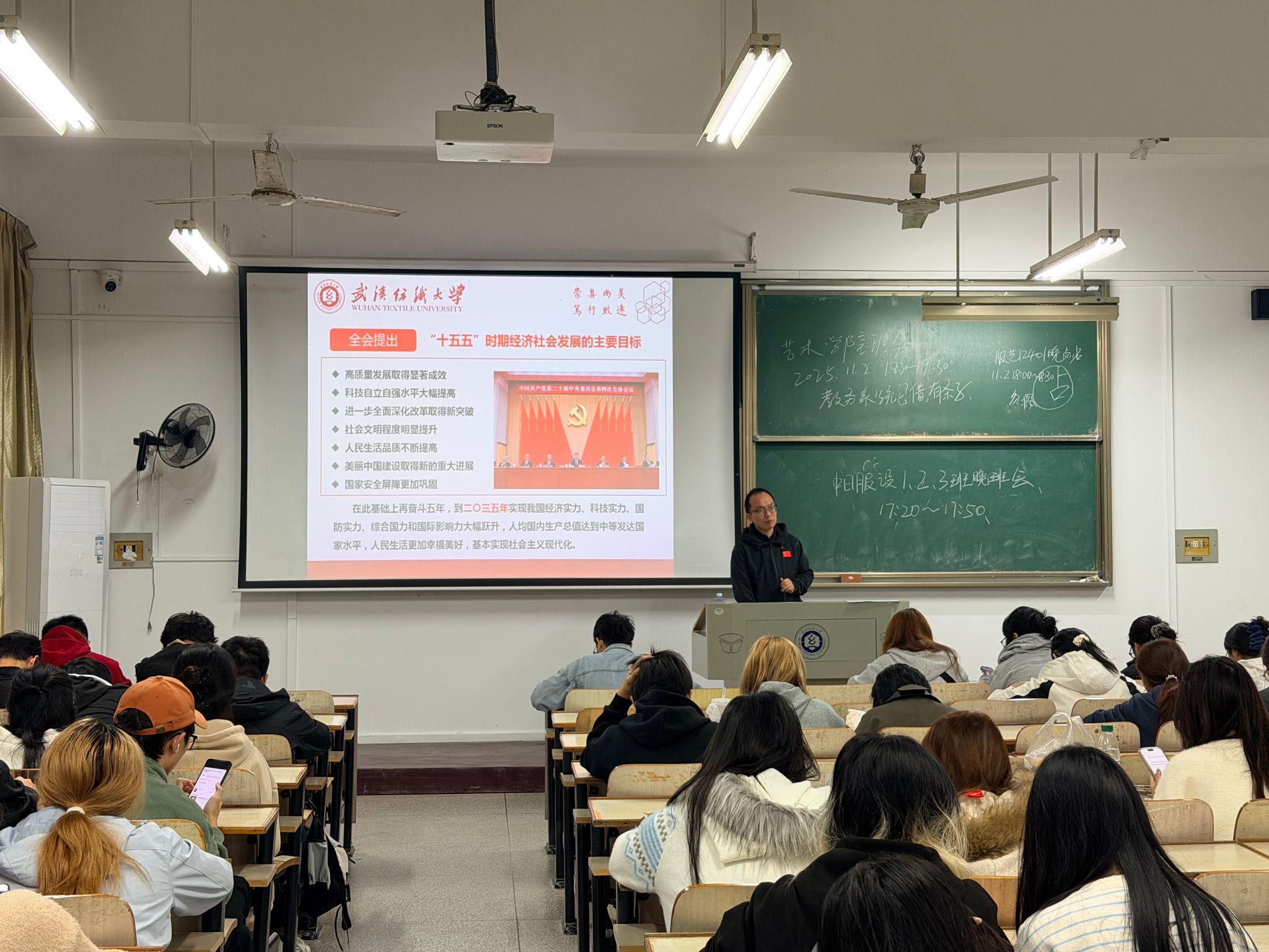 班主任带领同学们学习了全会召开的背景、意义和全会公报内容,强调全会充分肯定党的二十届三中全会以来中央政治局的工作,高度评价“十四五”时期我国发展取得的重大成就,擘画“十五五”发展蓝图,为强国建设指明方向。全体同学要深入学习贯彻全会精神,不懈努力、接续奋斗,为实现民族复兴的伟大梦想贡献青春力量!