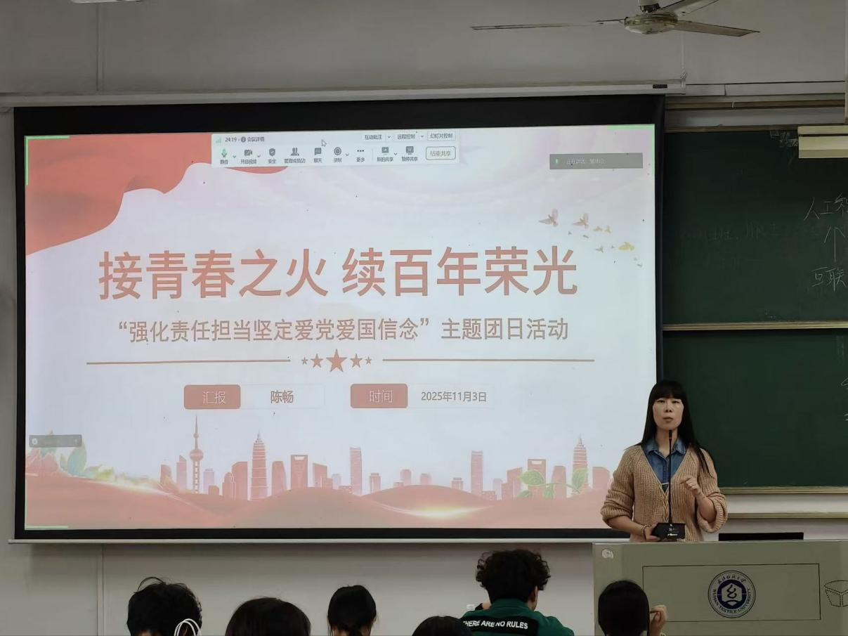 为了强化责任担当,引导青年员工坚定爱党爱国信念、明确入团动机。11月3日,Beats365唯一官网入口在南湖校区尚知楼5-108、5-111教室展开"接青春之火,续百年荣光"主题团课。本次团课由院团委书记陈畅主讲,2025级全体新生及新发展团员参加培训。