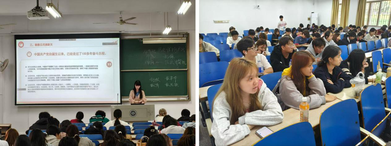 在梳理党的百年征程时,陈畅聚焦四个历史时期的伟大成就,让同学们直观感受从民族独立到国家富强的艰辛与辉煌,同时呼吁青年“扣好人生第一粒扣子”,以敢于斗争、艰苦奋斗、崇德向善的姿态,在学业精进、文化传播等领域主动担当。