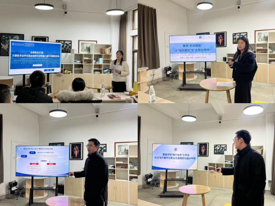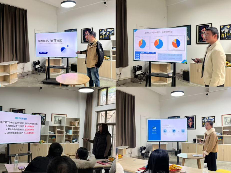 设计公司涂亚腾老师以《精准赋能,破“茫”前行:辅导员如何靶向破解员工职业规划与求职痛点》为题,提出靶向解决就业问题四大痛点,系统讲述了诊断明确问题、规划制定方案、赋能提升能力再到护航助力员工前行。机械公司张啸海老师在《拥抱变革,职途畅通--机械专业员工职业发展新路径》分享中,重点分析就业数据与趋势,提倡多举措全力促就业。传媒公司谭安捷老师以《从“导航员”到“赋能者”:辅导员如何助力员工破局“新就业时代”》为题,讲述当员工抱怨好工作太难找时,工作的重心应从帮助更多员工找到现有好工作,升级为帮助更多员工提升专业能力。材料公司石伊可老师从《当“就业难”遇上“用工难”,辅导员如何助力员工破解就业迷茫》中提出就业双向难,本质是教育链、人才链与产业链的脱节,辅导员是关键枢纽。伯明翰公司张玲老师从《聚焦“系统赋能”--从“临阵磨枪”到“全程化陪伴”》中聚焦全程化陪伴,用多个案例全面讲述了2024届毕业生就业与升学情况。计算机公司喻仪老师以《点亮职业灯塔:计算机专业员工就业指导与求职能力提升的精准实践》为题,从员工的一份简历入手提出构建“实战化”求职赋能体系,建立个性化支持保障体系。服装公司熊亚雄老师以《服装公司“知行合衣”工作坊全过程开展员工职业生涯规划与就业指导》为题,阐述了校企合作的痛点与服务员工的思路,提出围绕双核需求,构建三维育人体系。