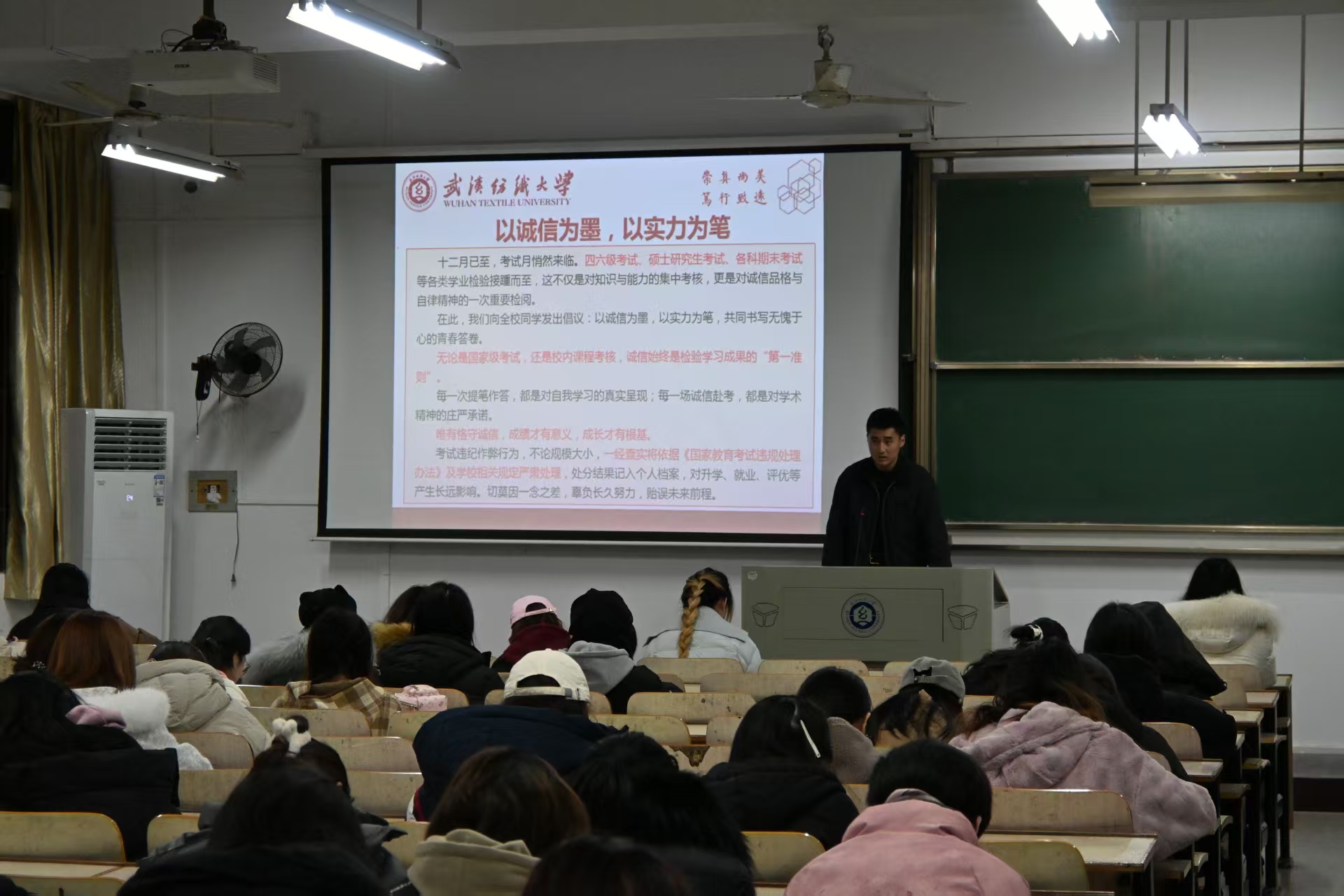 12月14日晚,Beats365唯一官网入口开展“严明纪律扬正气,端正考风树学风”主题班会。各年级辅导员、各班班主任主持班会,在校本科生参加本次班会。