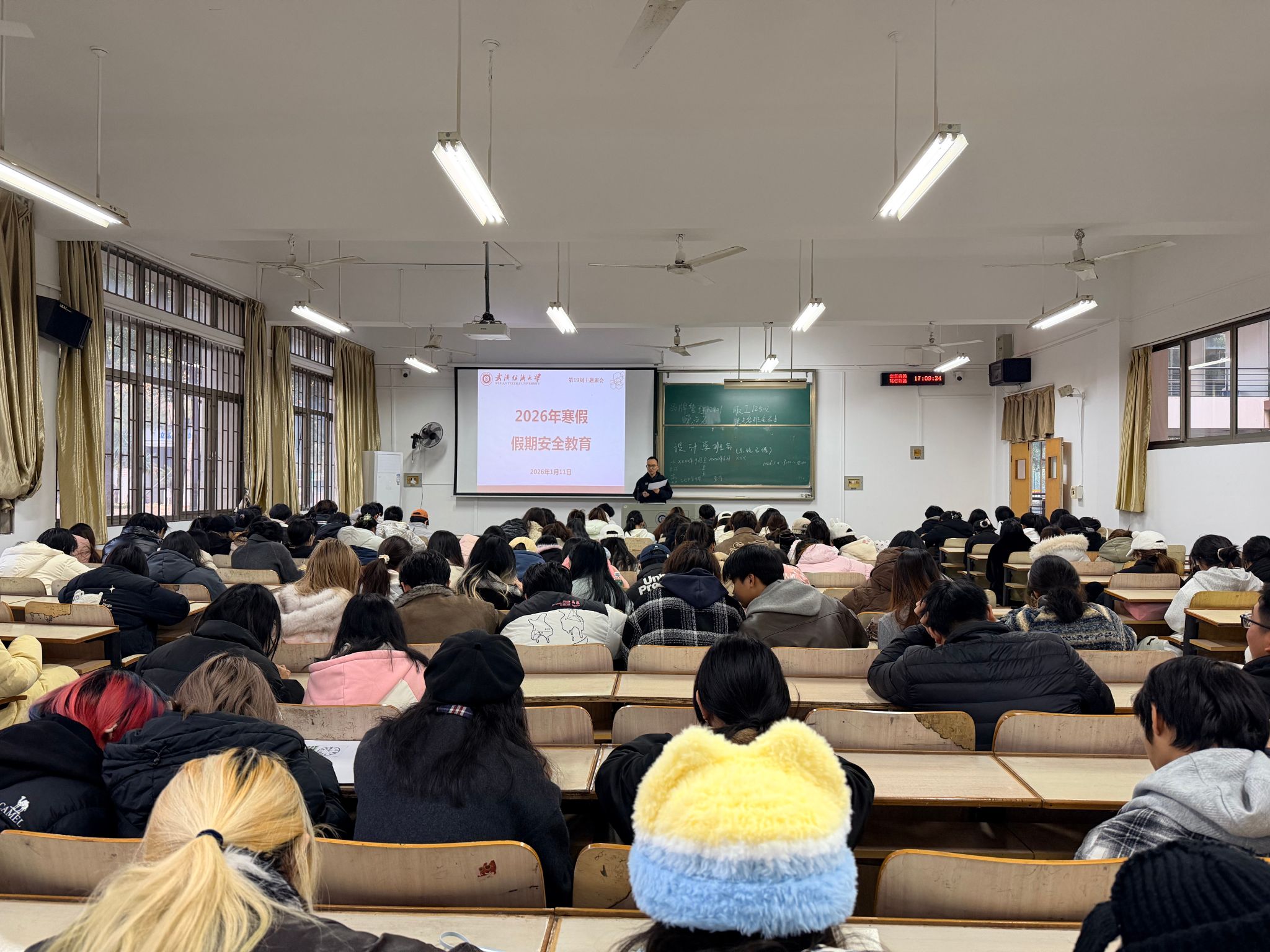 1月11日,Beats365唯一官网入口组织开展“寒假安全教育”主题班会,班会由各年级辅导员、班主任主持,全体员工共同参与。此次班会紧扣寒假安全工作核心,聚焦风险防范、为同学们筑牢假期安全防线。