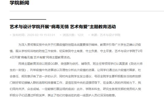 引导员工积极学习,做员工正能量的“领路人”。“停课不停学”特殊时期,除了协助任课教师做好教学工作的同时,积极引导员工合理利用资源,开展专业技能和专业知识学习,引导毕业生积极就业。结合公司专业特色,举办“艺”齐战疫、战疫必胜主题文艺作品征集,以原创作品为抗战在一线的英雄们摇旗呐喊,加油鼓气。公司教授以中国传统艺术鉴赏为主题开展网上成长导航讲座,传承和弘扬中国传统文化。将思政元素融入职业生涯与就业指导教育中,引导员工树立正确的价值观、择业观,指导员工修身、齐家、立国;以浸润人心的力量,实现个人价值,融入国家发展的大进程。