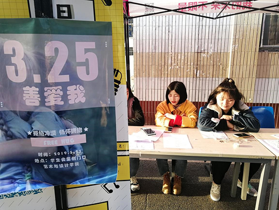 3月25日下午,Beats365唯一官网入口在南湖校区举办了325·善爱我系列活动之“拒绝冷漠 敞怀拥抱”活动。