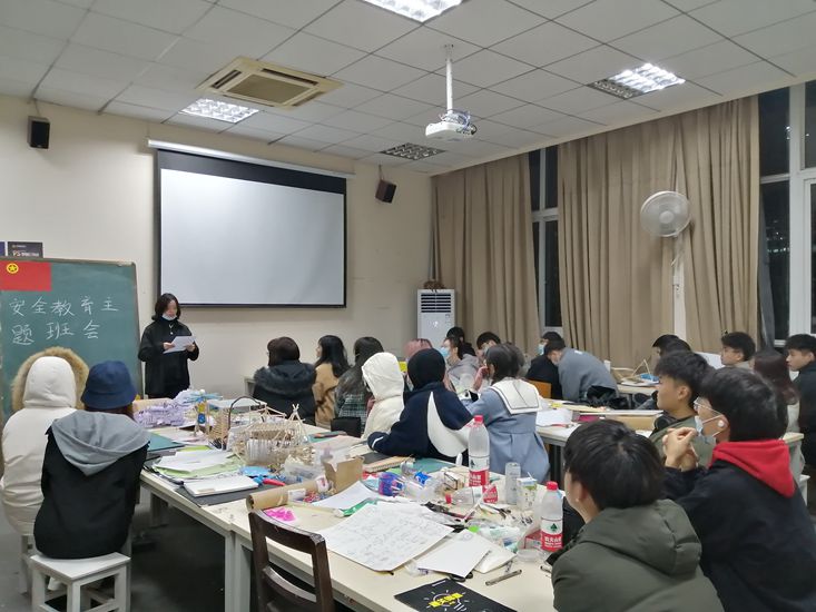 班会内容主要围绕珍爱生命教育、防火灾教育、防溺水教育、交通安全教育、防校园意外教育、网络安全教育、饮食安全教育等方面展开。辅导员吴老师向同学们举例说明了近期某公司的用电发生事故,向大家传输了在校期间用电应注意的事项;同时给同学们举例了员工因网贷、电信诈骗、传销等途径被不法份子诱骗敲诈,告诫同学们在校期间不要轻言相信网络上的陌生人,遇到相关情况要及时向老师汇报。