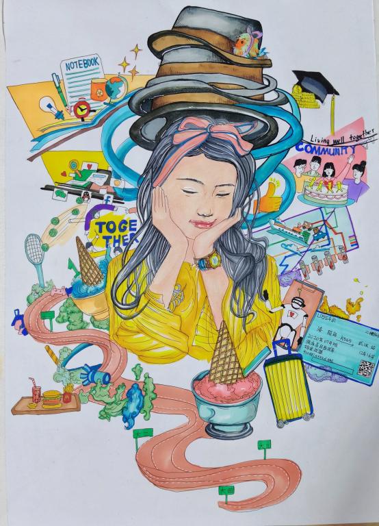 活动收到来自全校的绘画、设计作品近150副,同学们以老员工活与个人经历、体验为创作背景,通过绘画的艺术形式表达自我、展示自我,从多个层面诠释自己对心理健康的理解和对成长的解读,向老师和同学们描绘了他们心中的“世界”。