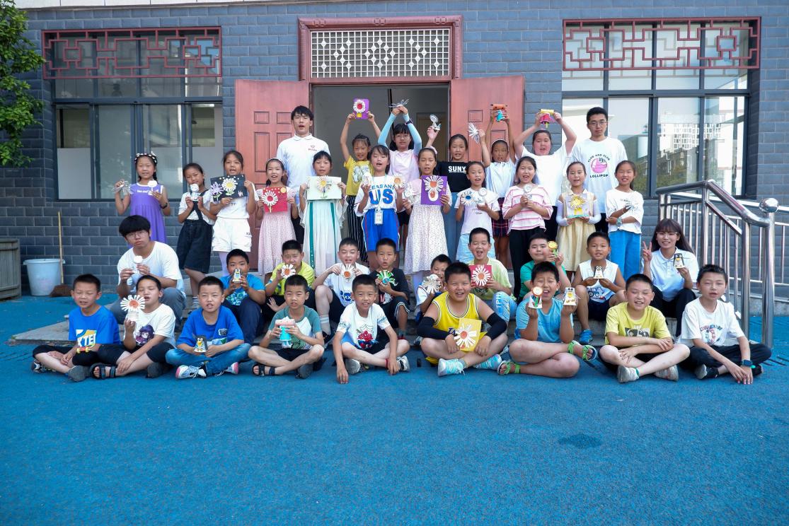 十天的志愿活动中,志愿者与孩子们在扎染、脸谱绘画、舞龙、剪纸灯笼等课程体会传统文化与民间艺术的魅力;在衍纸、刮画、综合材料课程中拓展现代艺术视野;在我为祖国画张画课程中感受党百年来波澜壮阔的历史,孩子们在各位志愿者的组织下,课堂表现活跃,思维敏捷,心灵手巧,完成了一幅幅精美的作品,最后进行集中展出。