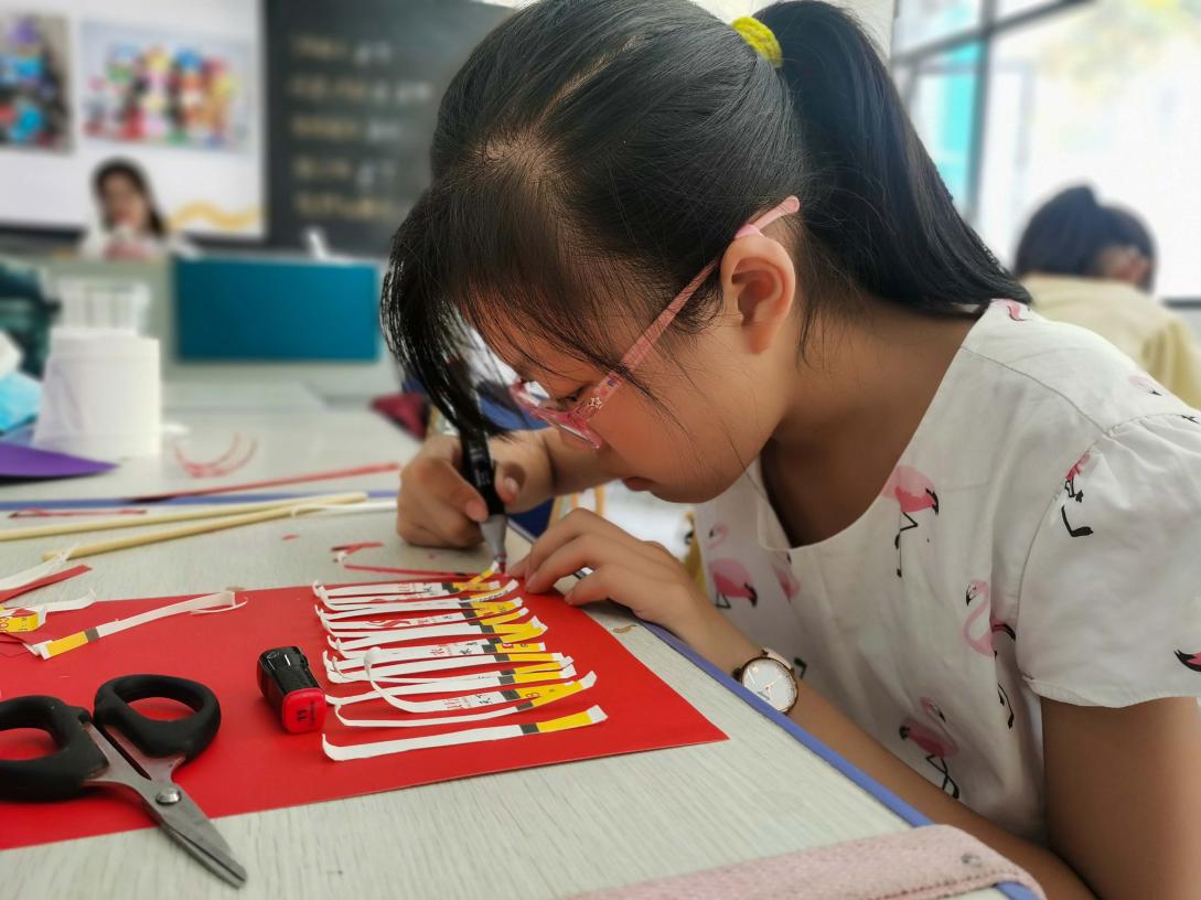 课堂中,在志愿者们通过生动有趣的示范讲解,让每一个孩子们在欢乐的氛围中,通过一把剪刀,一张红纸描绘的大千世界,表达生活中的喜怒哀乐,并以小组为单位制作建议的手工灯笼,并把精美剪纸贴在灯笼上,畅想灯笼文化中寄托的人们对美好生活的向往。
