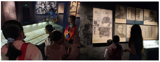 随后实践团队带领社区儿童走进辛亥革命博物馆,这里记载着从晚清中国走到武昌起义,再到创建共和以及直至今日辛亥百年的荣光历史,此行让孩子们更真切地了解党史学习党史同时也让孩子们深深地体会到我们今天的幸福生活是来之不易的,是解放军们不怕牺牲、英勇作战而来的。同时也让孩子们在探寻学习红色知识的过程中,进一步激发他们的爱党爱国的热情。