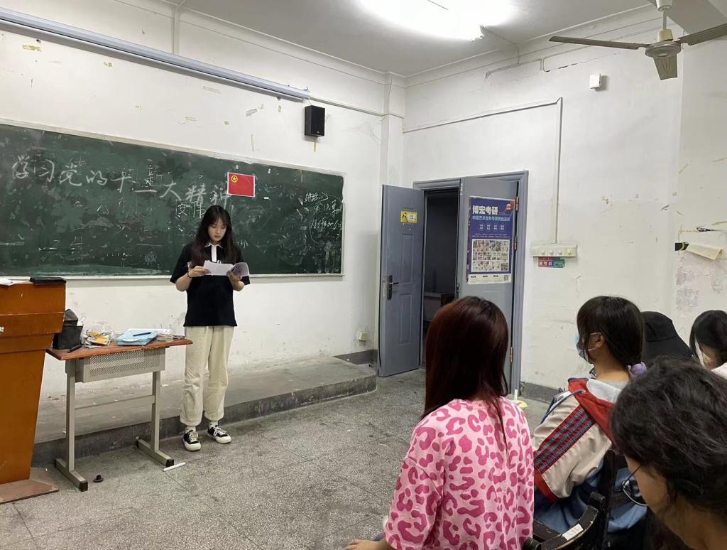 本次活动由各班团支书组织,全体班团支部成员起立唱国歌,全体成员宣读入团誓词,重温当年的铮铮铁骨,会议强调,认真学习宣传贯彻党的二十大精神,是当前和今后一个时期共青团的首要政治任务,全团必须切实提高政治判断力、政治领悟力、政治执行力,深刻领悟“两个确立”的决定性意义,更加紧密地团结在以习近平同志为核心的党中央周围,自觉用习近平新时代中国特色社会主义思想武装全团、教育青年,不断增强“四个意识”、坚定“四个自信”、做到“两个维护”,以忠诚践行初心,以实干担当使命,切实肩负起做好新时代党的青年工作的光荣职责,引领广大团员青年在以中国式现代化全面推进中华民族伟大复兴的新征程上,与全国各族人民一道团结奋斗,让青春在全面建设社会主义现代化国家的火热实践中绽放绚丽之花。