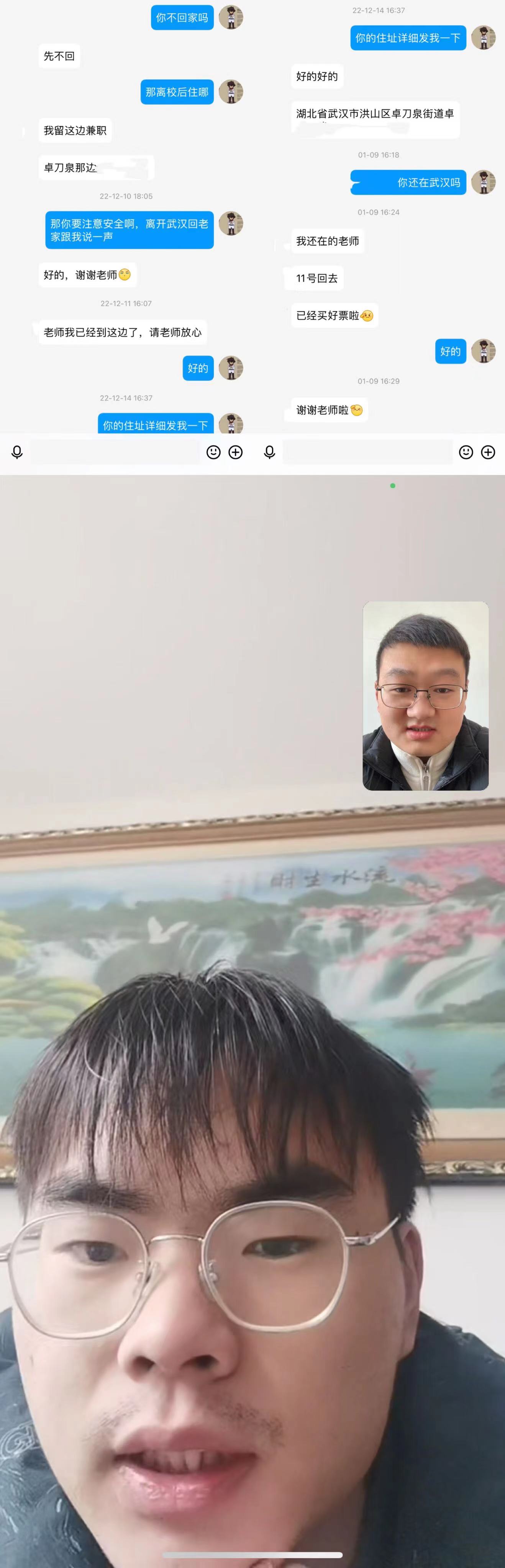 辅导员详细了解员工返乡后身体健康、居家学习、假期安排等情况,并送上新春年祝福。