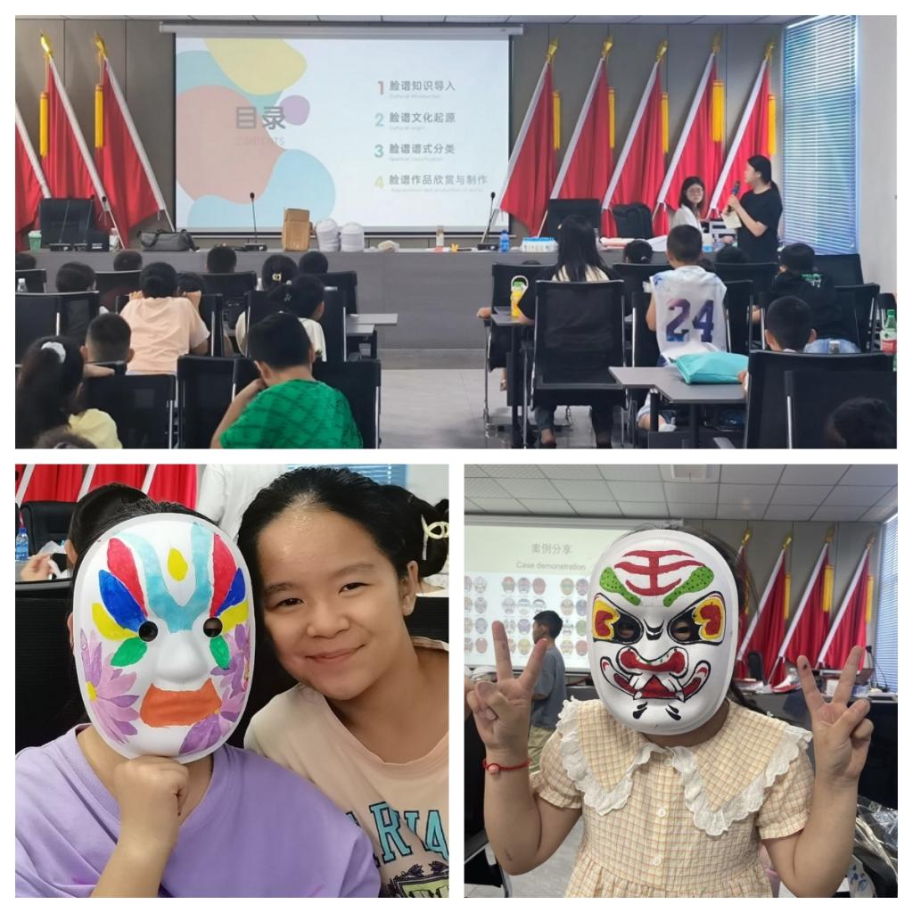 京剧脸谱是京剧人物角色的面部绘画,具有很强的装饰性和形式美感,是中国传统文化中最经典,最具代表性的文化艺术。志愿者杨谨怡对京剧中脸谱的绘画技法,纹样,谱式进行详细讲解,并带着孩子们在脸谱上进行脸谱绘制。经过一上午的创作,一幅幅生动形象的京剧脸谱跃然于孩子们灵动的笔尖,孩子们沉浸在自己的精美作品中。
