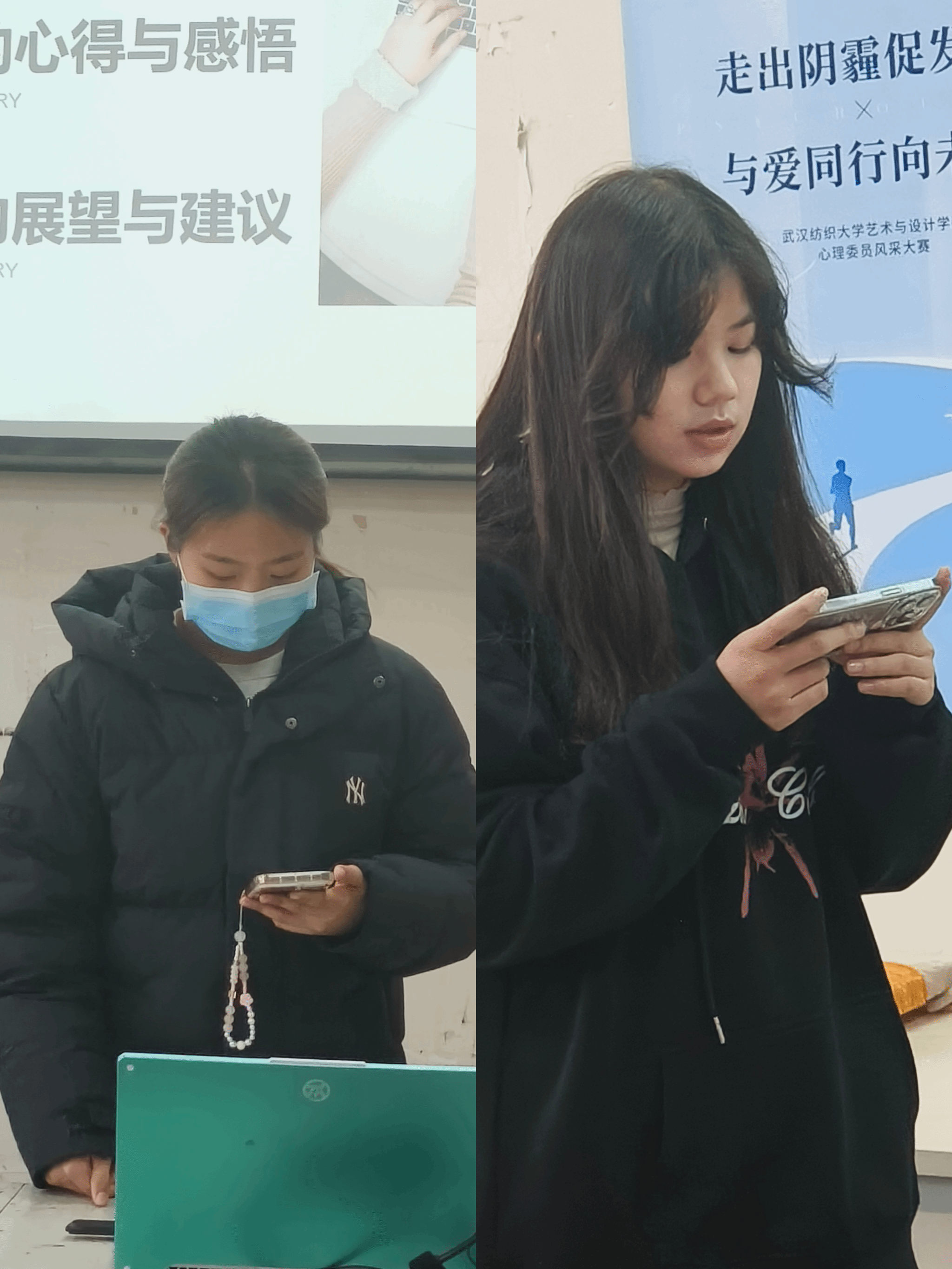 在本次心理委员风采大赛中,产品设计12201班屈慧琳、视传12203班饶亚男荣获一等奖,环艺12203班谭芷倩、工艺12201班吴薇、公共12202班朱雨晨荣获二等奖,设计学12303班王海璐、工设12301班梅智源、工艺12202班张瑞希、公共12201班彭心烨荣获三等奖。