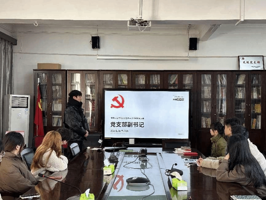 随后,张嘉浚作为党支部副书记代表,介绍了他们在任职期间开展的各项工作,包括党员关系转接工作、党员发展工作、民主生活会等。并且对后续工作提出了一些建议与思考,如日常工作文件要做好留存备份,养成定期整理文件的习惯,尽量做到交接文件电子化、规范化。