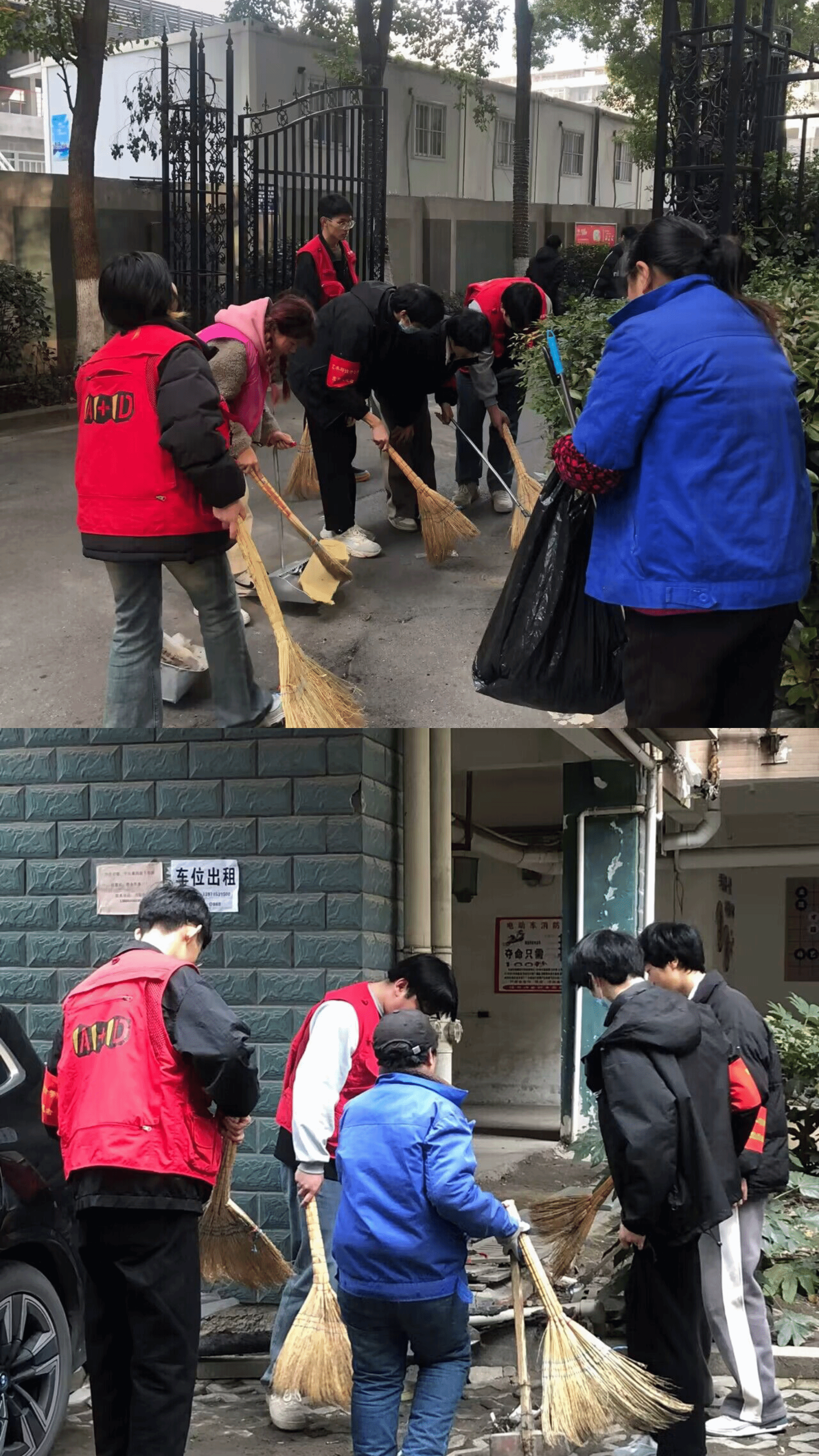 活动伊始,社区里的工作人员对志愿者们进行了悉心的指导,志愿者们拿起好撮箕、扫帚和抹布,分两组开始义务打扫活动。一组同学清理社区路边的垃圾和落叶,擦拭宣传栏橱窗,另一组同学对社区内共享单车进行整理摆放,对停放点进行清洁维护,有利于社区居民的出行及社区的美观。经过1个多小时的艰辛劳动,周边道路变得干净整洁,社区环境也焕然一新,来往的居民都对志愿们竖起大拇指,尽管天气还有点冷,同学们心里都暖洋洋的。