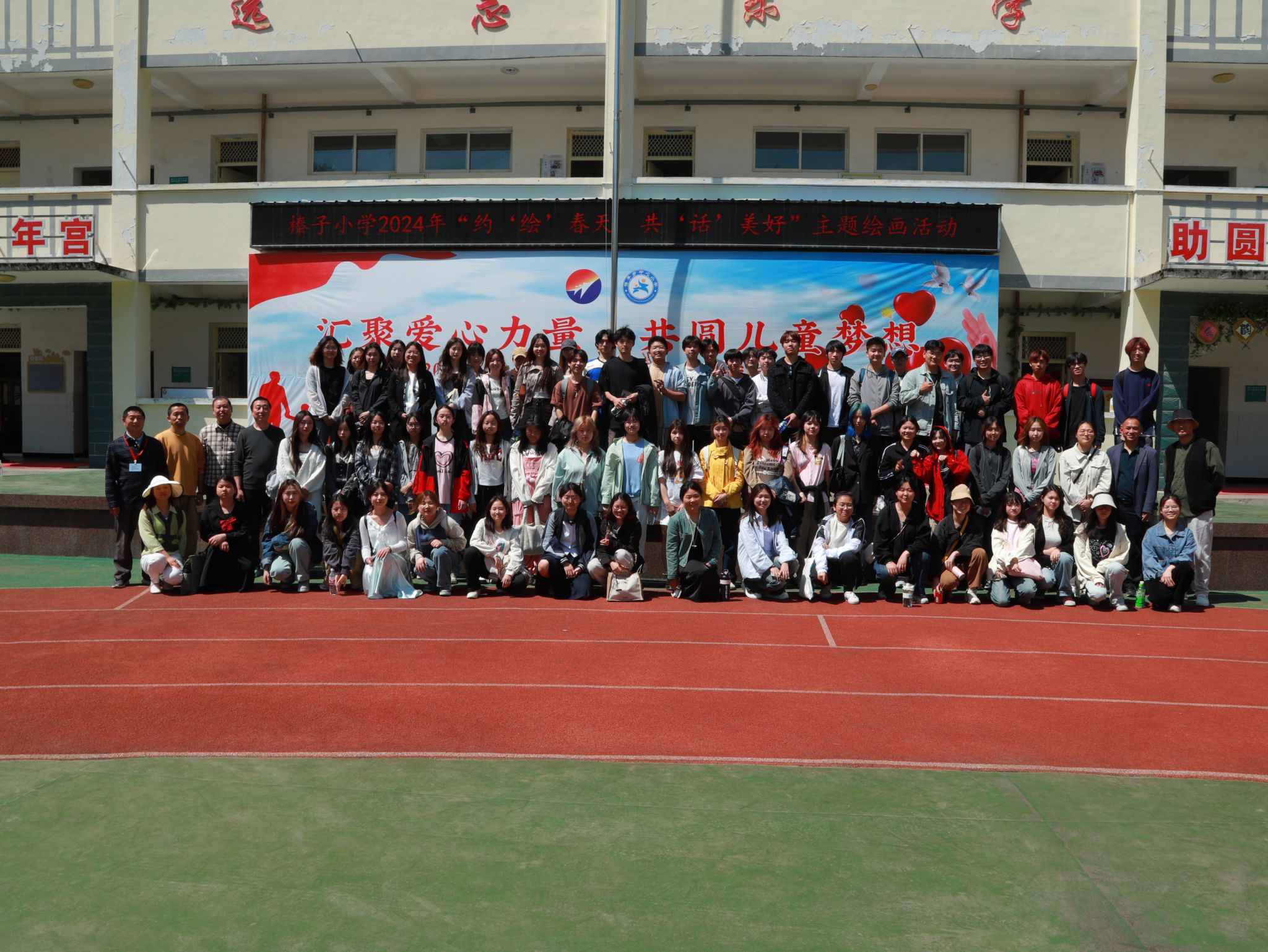小朋友们和大哥哥大姐姐们大手牵小手,带领纺大的师生们参观了校园宿舍和教室,感受到了充满艺术的校园氛围,虽然榛子小学位于群山中,但是深受党和社会各界关心,提供了较为齐备的美育设施且营造良好的素质教育氛围。