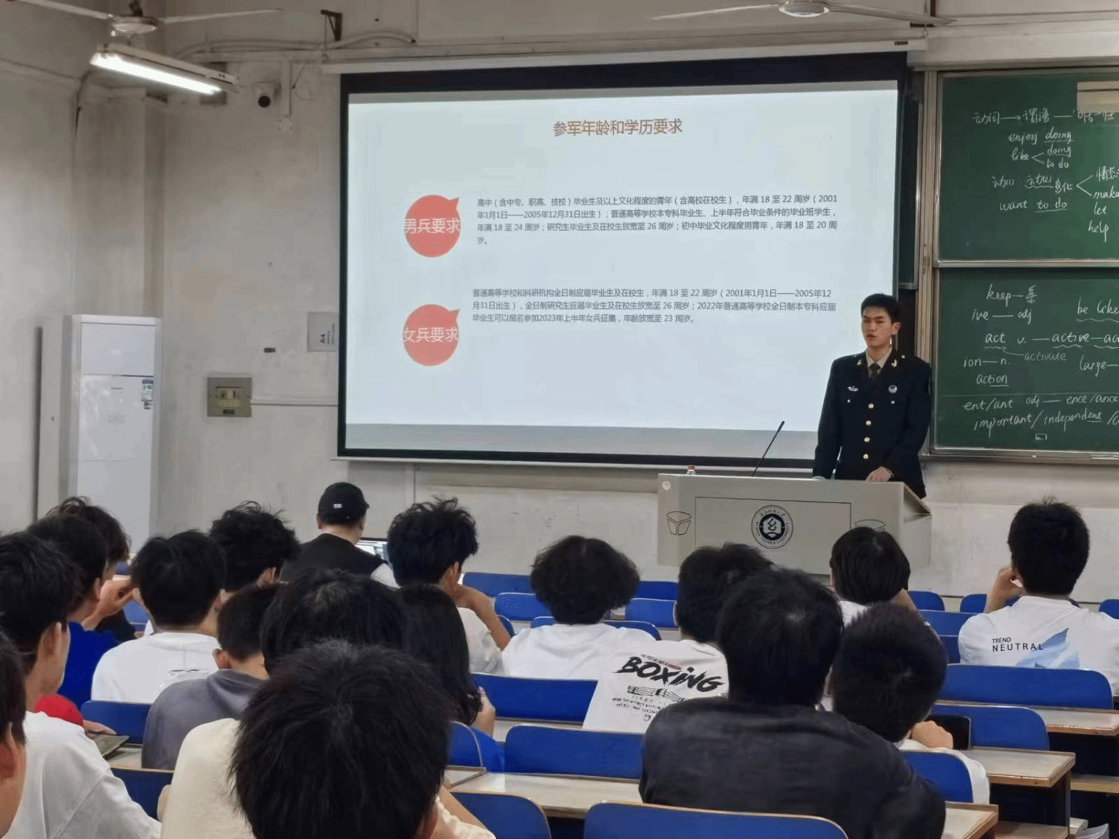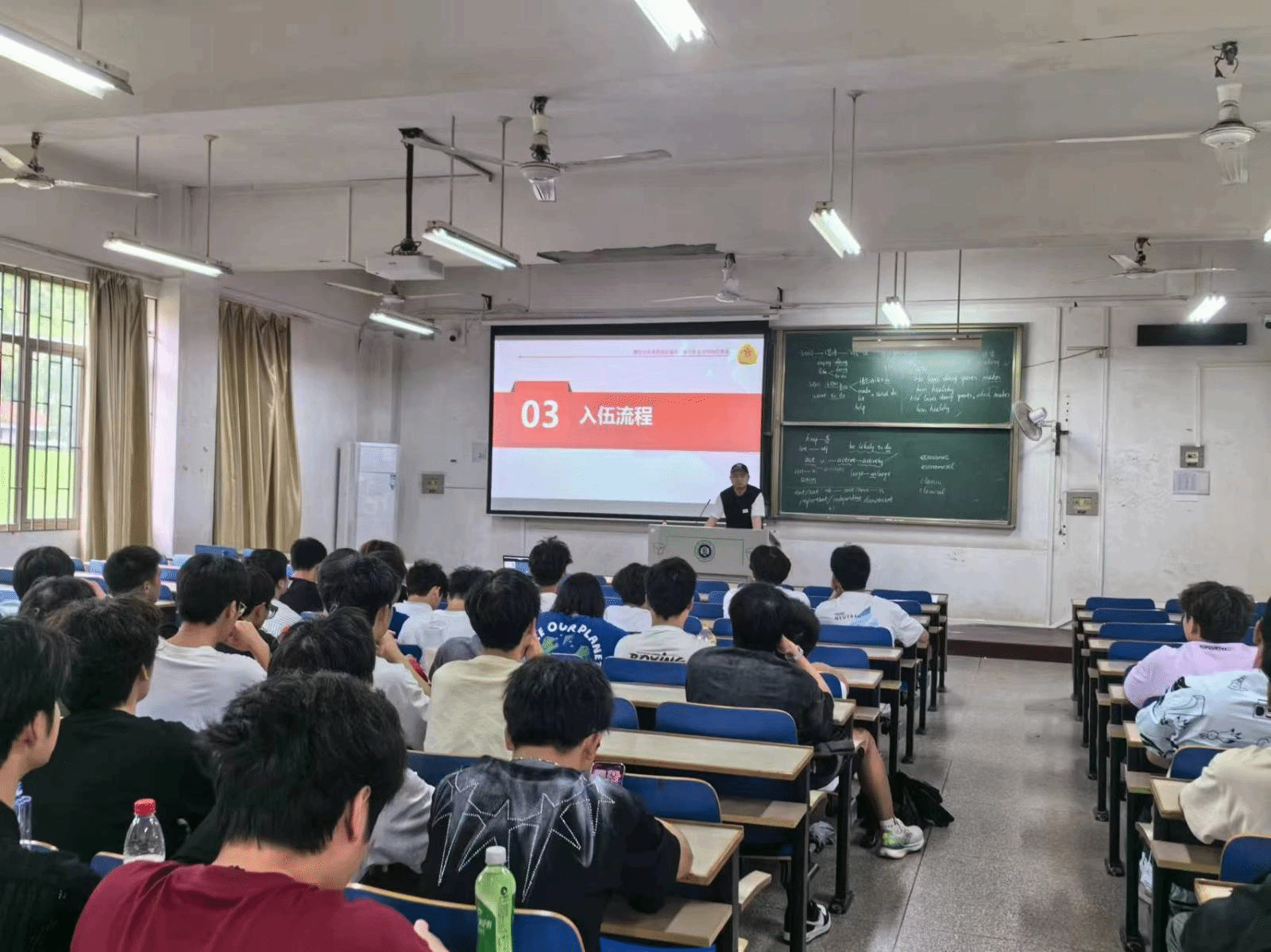 首先,各班主任结合班会主题向同学们做好老员工入伍的政策解读、申请条件和流程等,引导广老员工将个人梦想融入祖国强国梦强军梦中,勇于担当大任,报效祖国。