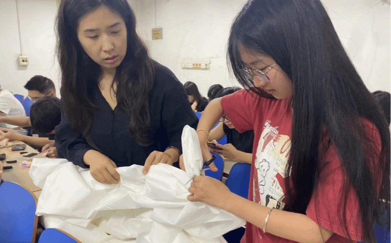 本次活动是以艺术疗愈为载体,在艺术构思、艺术创作的过程中感受情绪的波动,并通过艺术材料释放自己在生活中的压力,直面焦虑,释放焦虑。活动中同学们可自由选择参加扎染、刺绣和布艺三个项目。活动开始前,杜晓茹老师向大家阐释了本次活动的主题——勾画束缚,找出你前进的负担,让同学们按照本次活动的主题进行冥想和构思,把自己内心最深处的情绪调动起来,同时希望同学们可以通过创作的方式进一步释放内心的压力,冲破束缚,体验艺术创作的乐趣和成就。