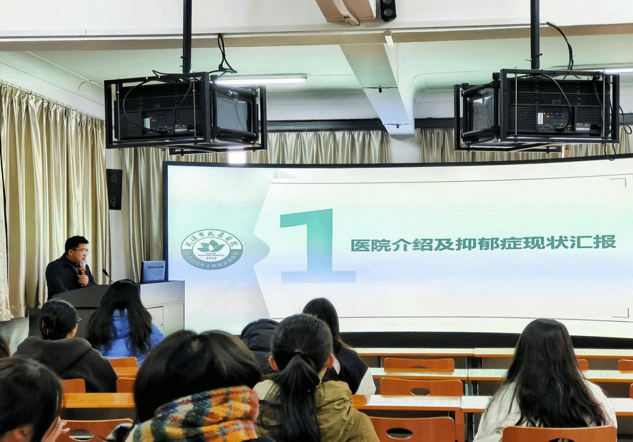 讲座伊始,姜振东导师介绍了本次会议的第一部分——医院概况及抑郁症症状汇报。结合丰富的数据和实际案例,姜老师全面阐述了抑郁症在情绪、认知、行为以及生理等多个层面的表现,诸如持续的情绪低落、兴趣丧失和睡眠障碍等。这一阐述不仅使与会者对这一常见精神疾病有了更直观和清晰的认识,还有效澄清了公众对其认知中的若干误解,强调了早期识别的重要性。