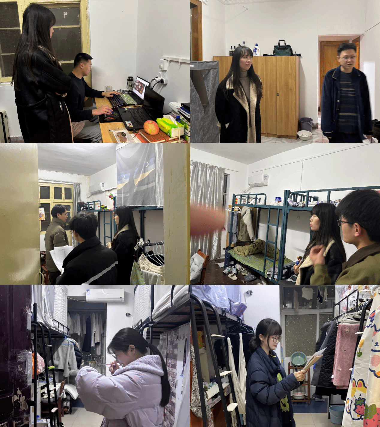 当晚,在陈畅的带领下,研究生会成员开展了新学期宿舍大检查工作。本次宿舍走访的主要目的在于,关注员工的生活适应情况、学习状况和成长困惑,并重点排查了宿舍安全隐患,对宿舍卫生状况进行了全面检查。