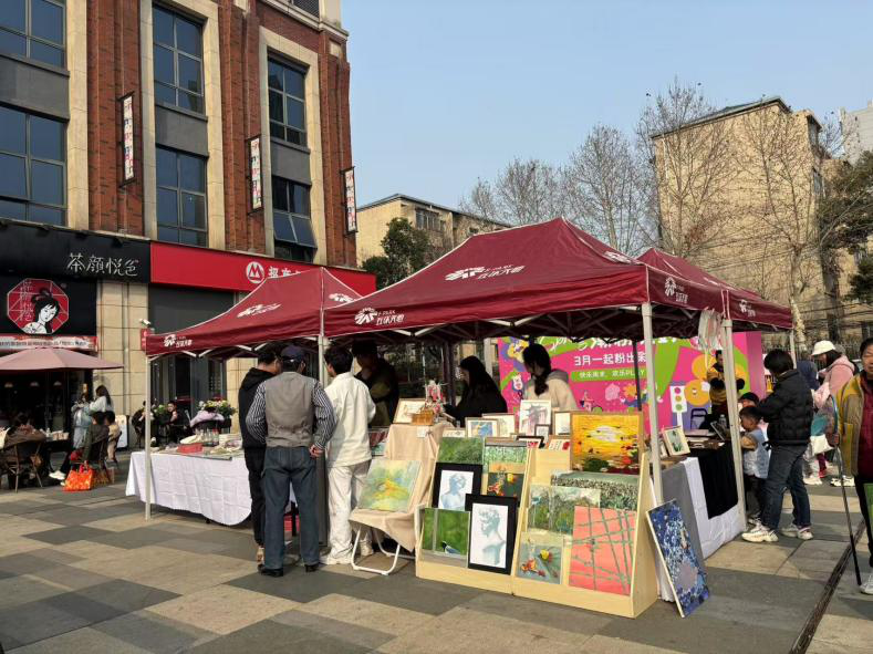 过程中,游客驻足工作室摊位,与同学们进行热烈的讨论、分享自己对于这些文化作品的独特见解。本次活动内容丰富多样,包括精工手作、时尚设计、绘画插画,无不展现了员工们创新精神。与集市中的其他创意摊位形成了良好的互动,共同营造了浓厚的文创氛围。