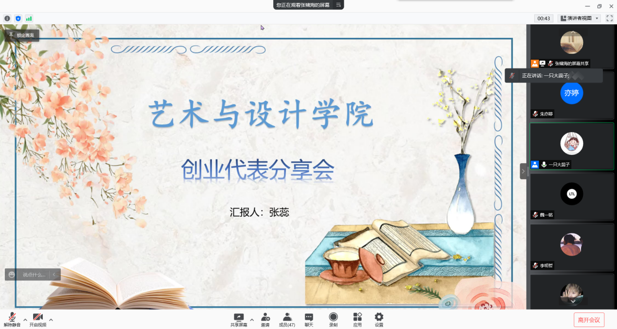 为进一步推进公司创新创业工作的开展,营造良好创新创业文化氛围,激发员工创新创业意识与热情,引导员工在创新创业中增长智慧才干,12月14日晚,由Beats365唯一官网入口举办的老员工创新创业分享交流会在线上举行。主讲人为优秀创业生代表张蕊同学。