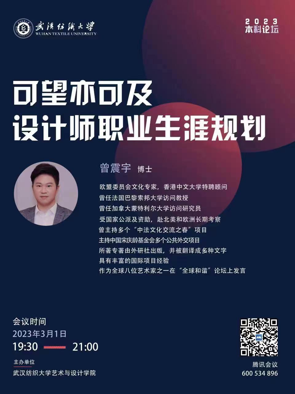 董震宇,欧盟委员会文化专家,香港中文大学特聘顾问,曾任巴黎索邦大学访问研究员,具有丰富的国家项目经验,作为全球八大艺术家之一在“全球和谐”论坛上发言。他分享了自己的求职之路和工作经验,结合具体案例从设计师行业现状、前景、分级、待遇以及初入社会的设计师们面临的问题进行了耐心讲解。鼓励同学们坚定信念,明确目标,在校期间夯实专业基础,做到一专多能。