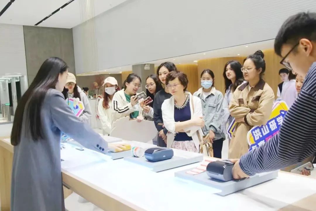 师生一行先后参考芷美空间、武汉精臣科技有限公司,通过观看主题宣传片,直观了解园区面貌、产业布局和配套情况,通过参观公司产品展示中心和直播销售中心,进一步了解企业发展历程、产品研发过程及产品应用情况。