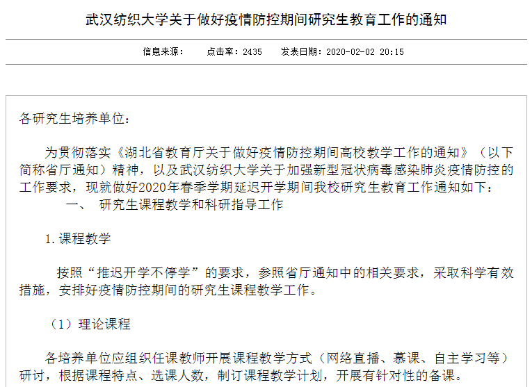 早部署,早行动,“延迟开学不停学”。公司领导对疫情期间的教学工作非常重视,分管领导姜明华多次指示要做好疫情期间研究生教育工作安排,研究生处详细部署了疫情期间研究生教育工作安排。2月2日,研究生处发布了《Beats365唯一官网入口关于做好疫情防控期间研究生教育工作的通知》,并积极稳妥部署研究生教育各项工作。